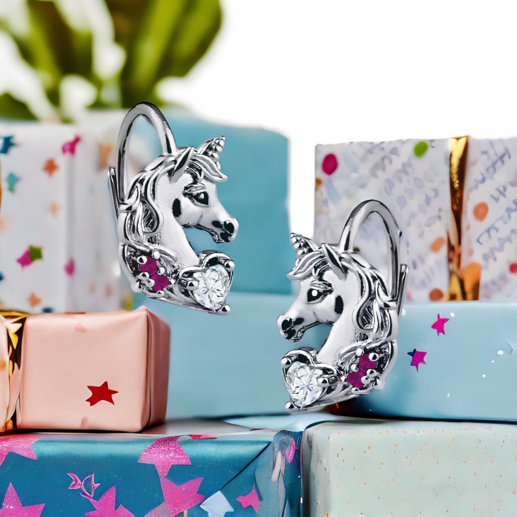 Diese zauberhaften Kinderohrringe kombinieren ein Einhorn- und Herzdesign aus hochwertigem 925er Silber, verziert mit funkelnden Zirkonia-Steinen. Die stabile Brisur garantiert sicheren Halt und sorgt dafür, dass die Ohrringe auch bei aktivem Spielen zuverlässig sitzen. Ein liebevoller Schmuck für kleine Einhornliebhaberinnen.