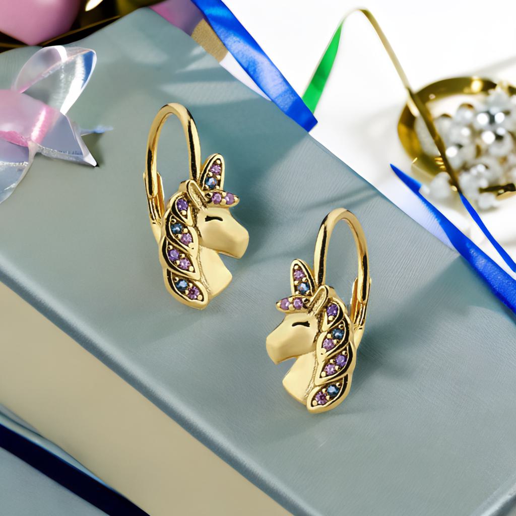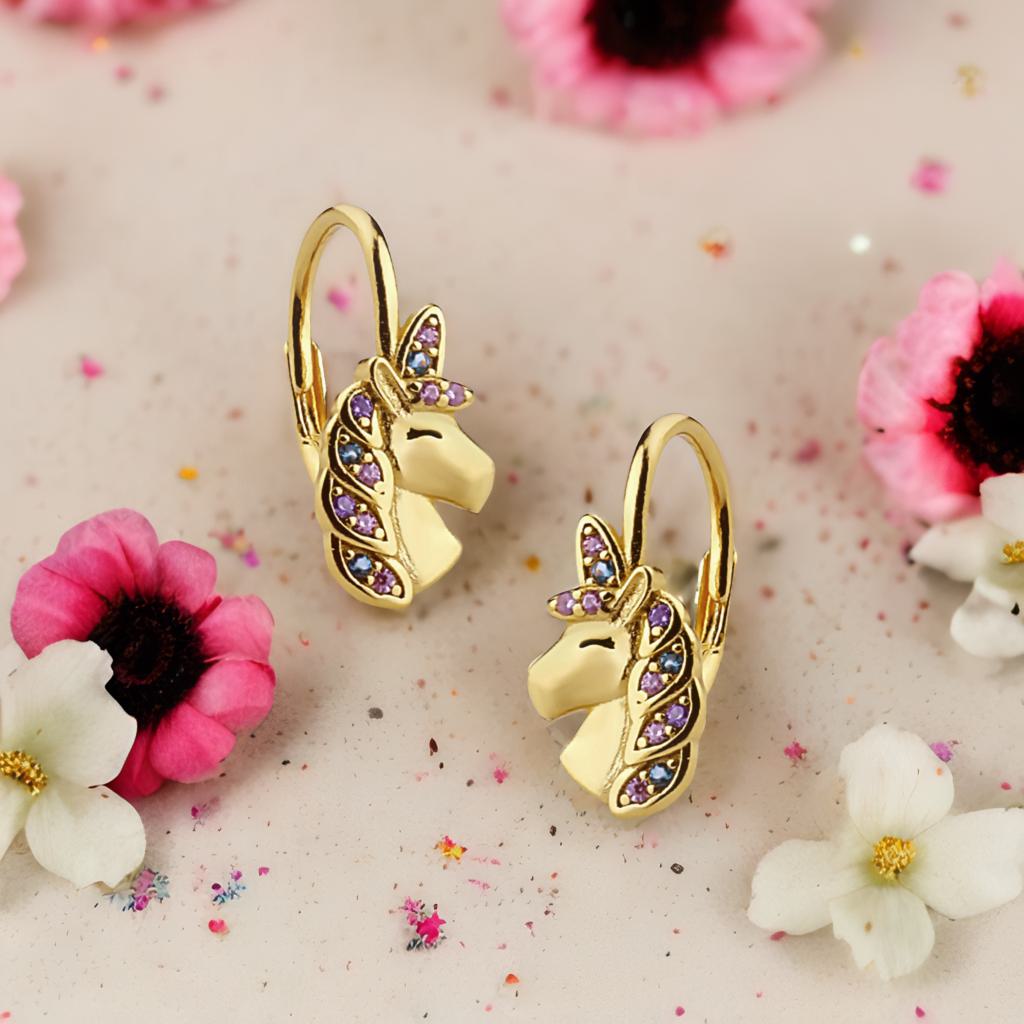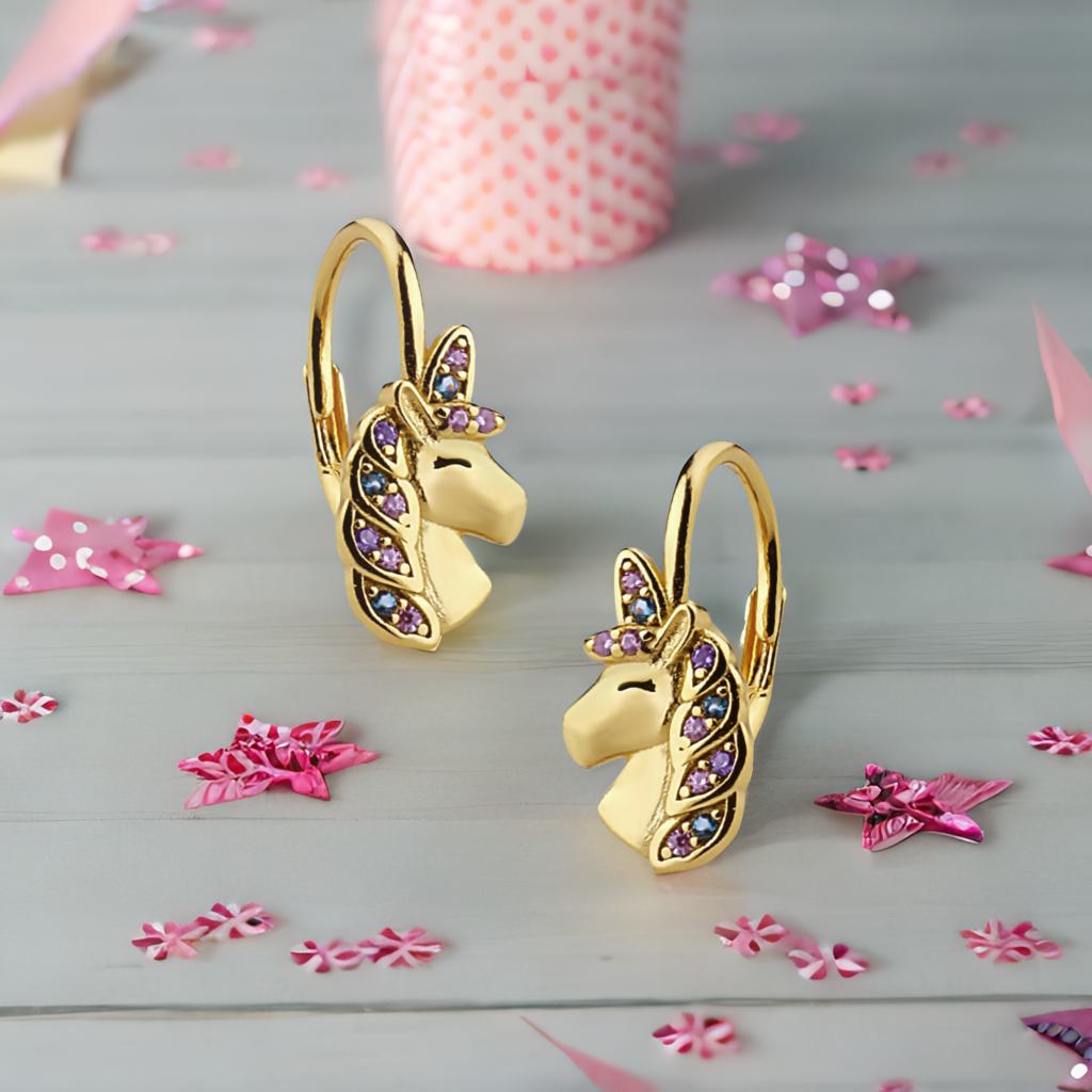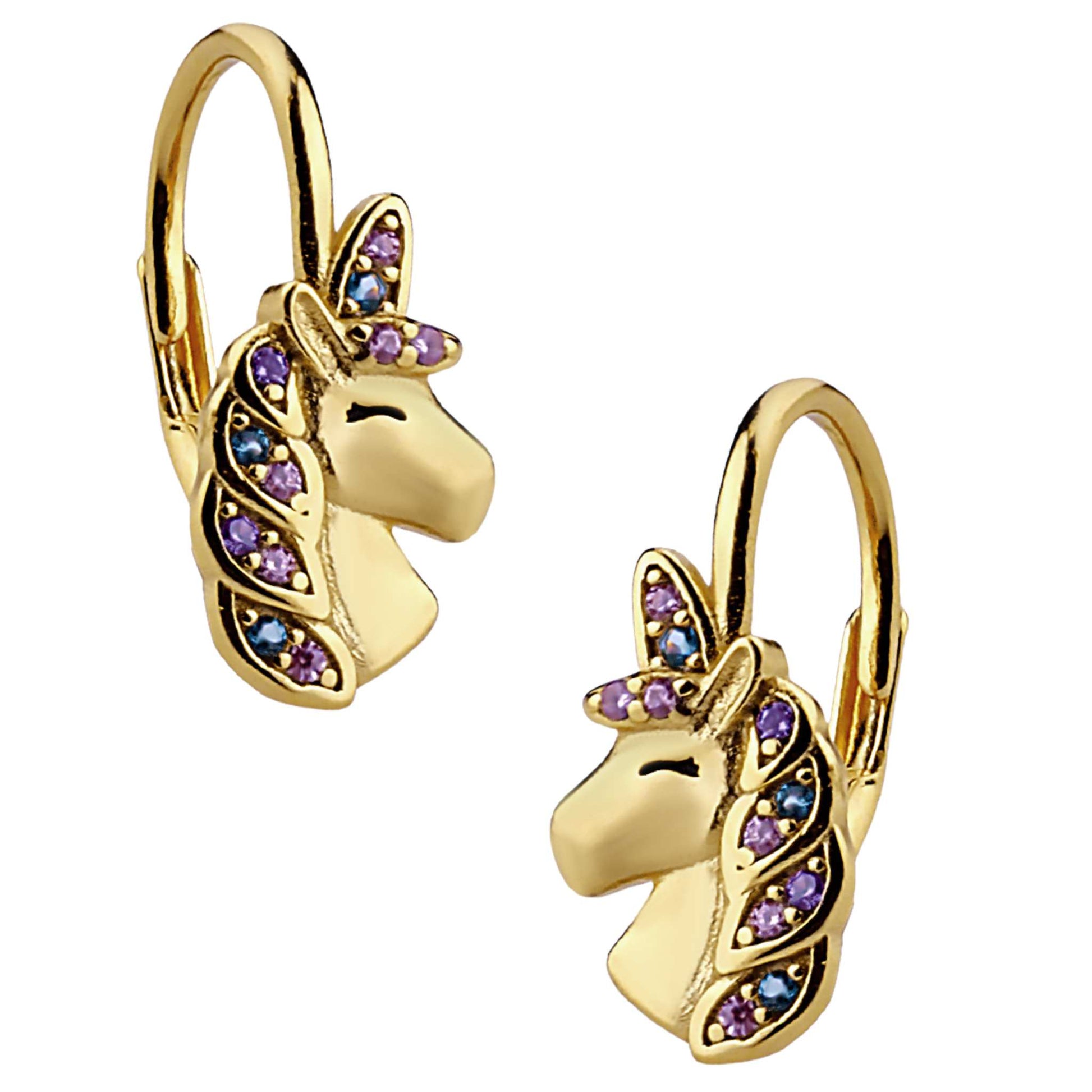 Kinderohrringe Einhorn Zirkonia 925 Silber vergoldet