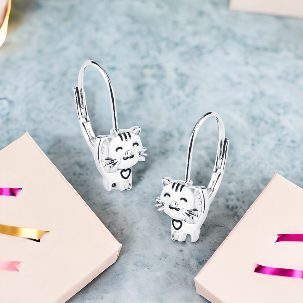 Diese charmanten Kinderohrringe in Katzenform aus 925er Silber sind perfekt für kleine Tierliebhaber. Dank der stabilen Brisur sitzen sie sicher und bequem den ganzen Tag über. Ein liebevolles Accessoire, das spielerisch Freude und Stil verbindet.