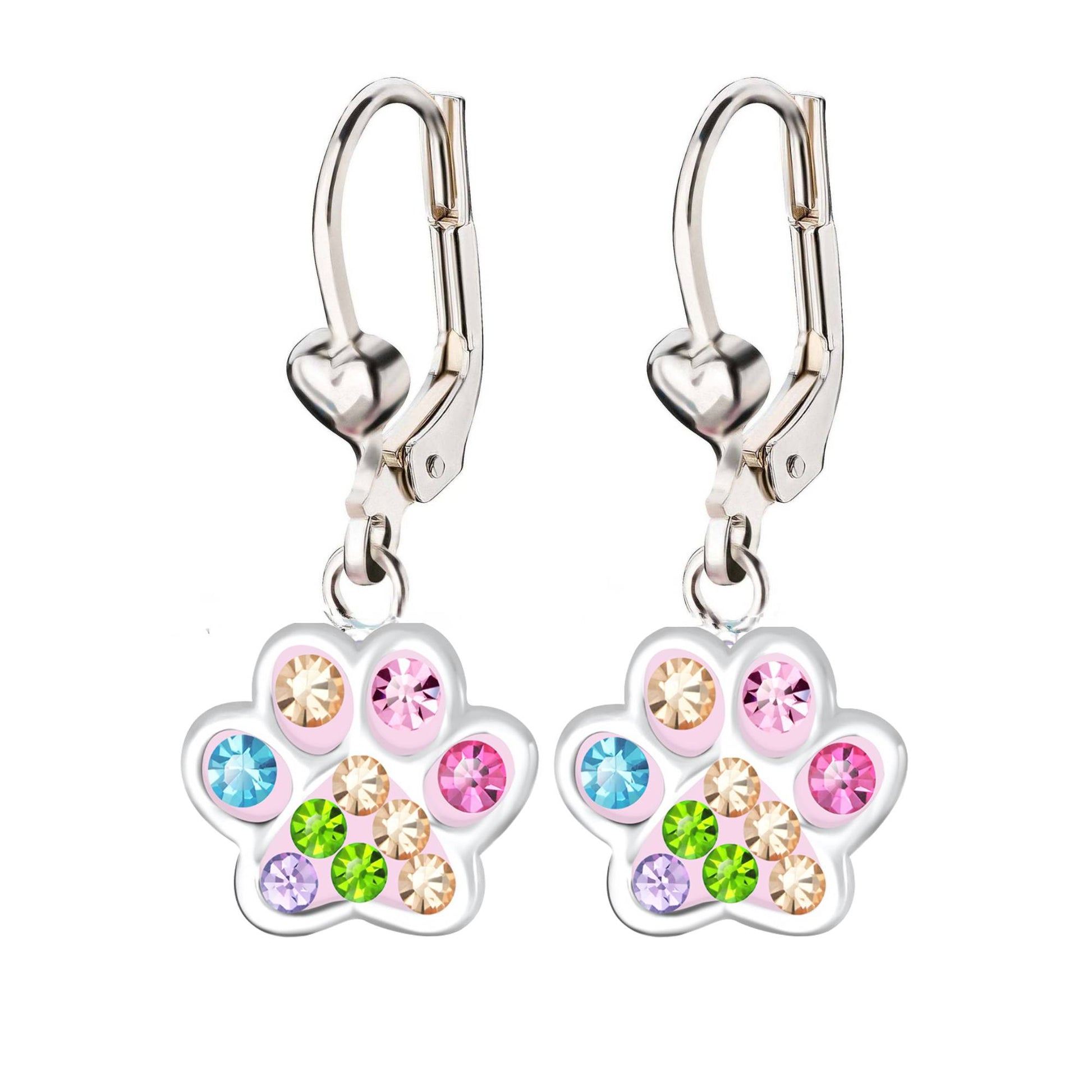 Kinderohrringe Ohrhänger Pfote Regenbogen 925 Silber