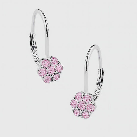 Kinderohrringe pinke Blume Zirkonia 925 Silber