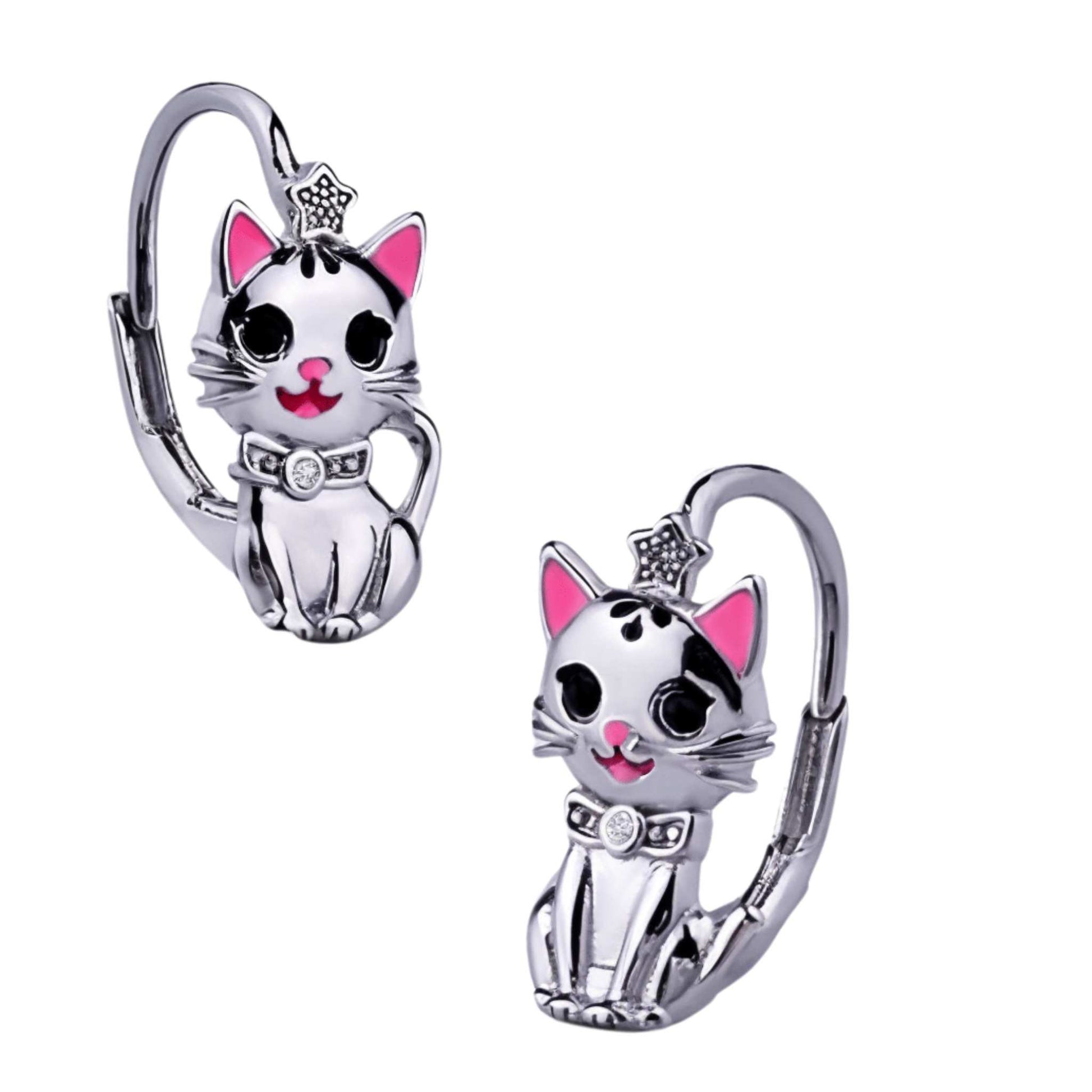 Kinderohrringe pinke Katze 925 Silber Zirkonia