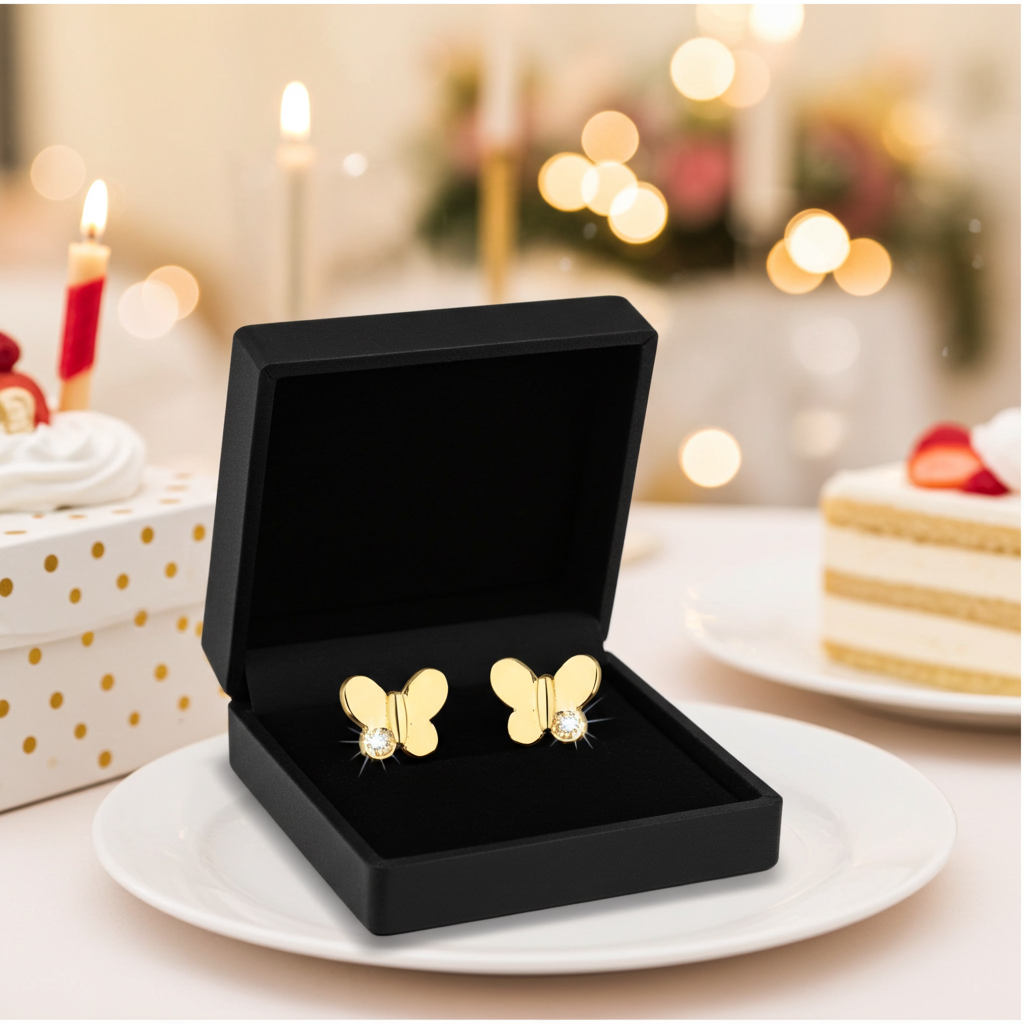 - Design: Schmetterling-Form mit funkelnden Zirkoniakristallen – ein verspielter Akzent, der jedem Outfit Fröhlichkeit verleiht