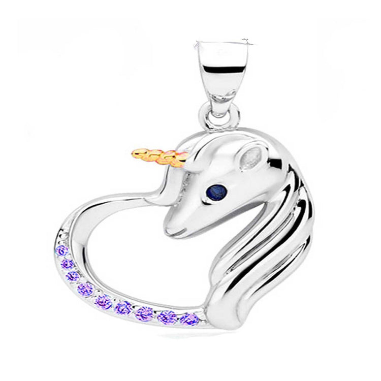Kinder Anhänger Herz Einhorn 925 Silber Zirkonia Lila