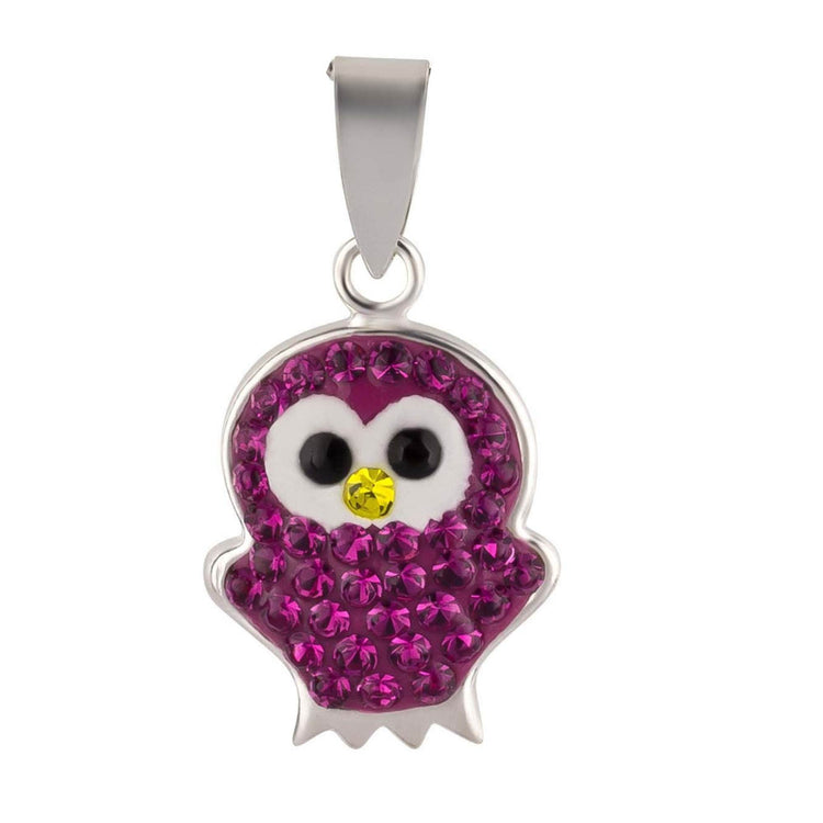 Kinder Anhänger Eule 925 Silber pinke Kristalle