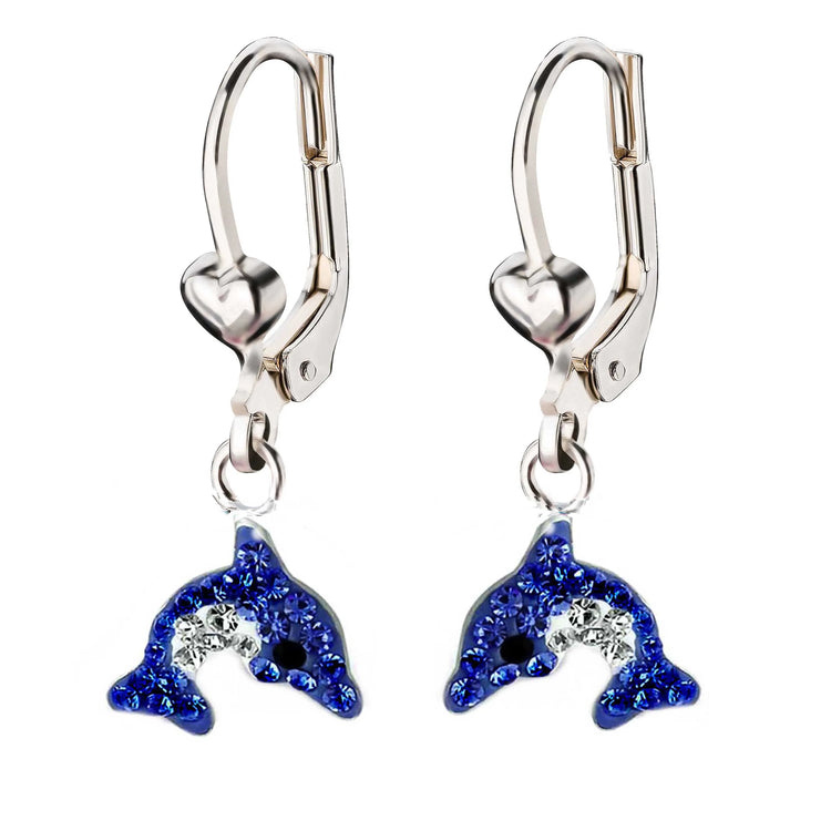 Kinderohrringe Ohrhänger Delfin 925 Silber Ozeanblau