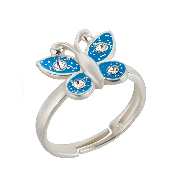 Kinderring Schmetterling 925 Silber Glitzer Blau