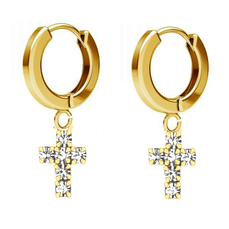 Ohrringe Creolen Kreuz 925 Silber vergoldet Zirkonia klar