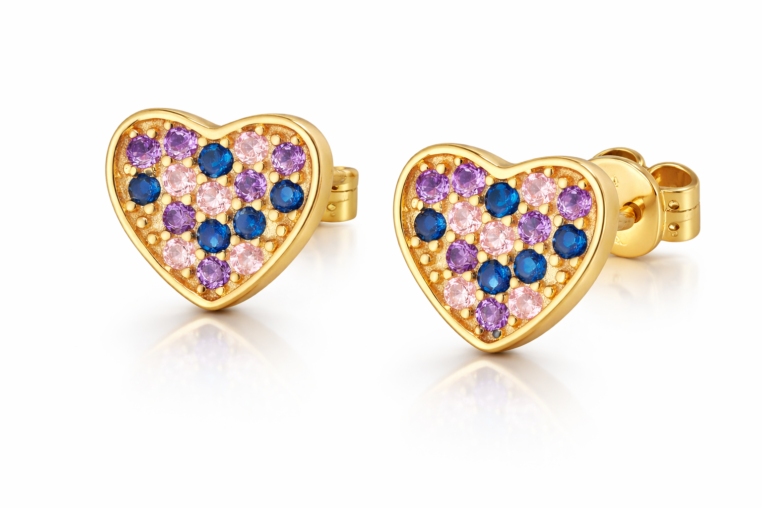 Ohrringe Herz Zirkonia bunt v erarbeitet 925 Silber vergoldet