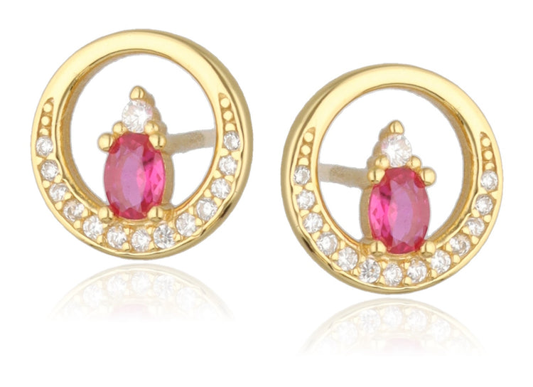Ohrringe Zirkonia Rubinrot Ohrstecker 925 Silber vergoldet Durchmesser 1,2 cm