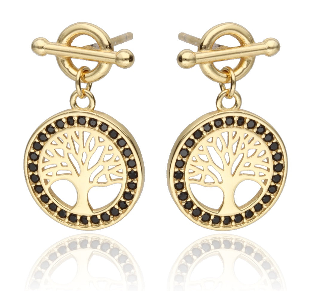 Ohrringe Lebensbaum Zirkonia schwarz 925 Silber vergoldet
